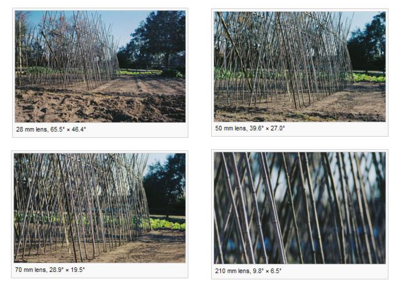위의 그림을 살펴보면, 왼쪽 상단의 첫번째 사진에서 wide angle lens를 사용했을 때 그에 상응하는 field of view가 65.5 x 46.4 로 나타난다.