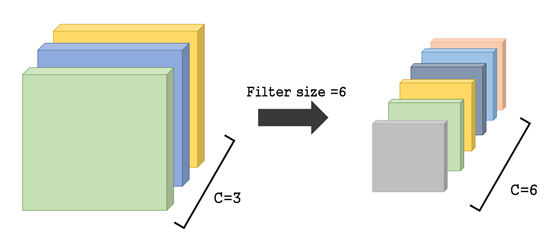 레이어가 깊어질수록 filter의 개수가 많아지고, 너비와 높이는 줄어든다.