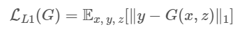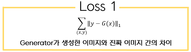 첫번째로, 만들어낸 이미지와 실제 이미지간의 격차를 줄여주는 loss function인 L1 loss function이다.