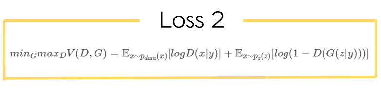 이때 학습 과정은 GAN과 거의 동일하기 때문에 cGAN의 loss function은 다음과 같은 수식으로 표현할 수 있다.