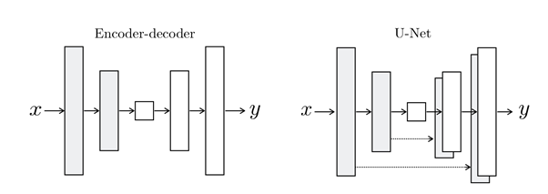 이때 U-Net은 Encoder-Decoder 구조에 그림과 같이 대칭되는 skip-connection을 추가한 형태이다.