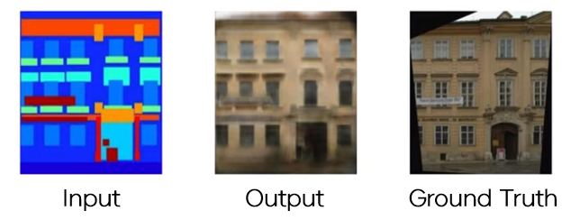 generator가 새로운 이미지를 생성할 때 input인 라벨만 보았을 때 벽이 나무로 되어있는지, 흰색 벽돌로 되어있는지 등을 알 수 없다. 따라서 이런 상황에 부딪힌 generator는 어느 것을 택해도 loss가 너무 커지지 않도록 중간의 어떤 애매한 것을 택하는 경향을 보이게 된다. 즉 Average를 학습하려고 하는 것이기 때문에 low frequency한 부분에는 효과적이지만 high frequency를 살리지 못하게 된다!